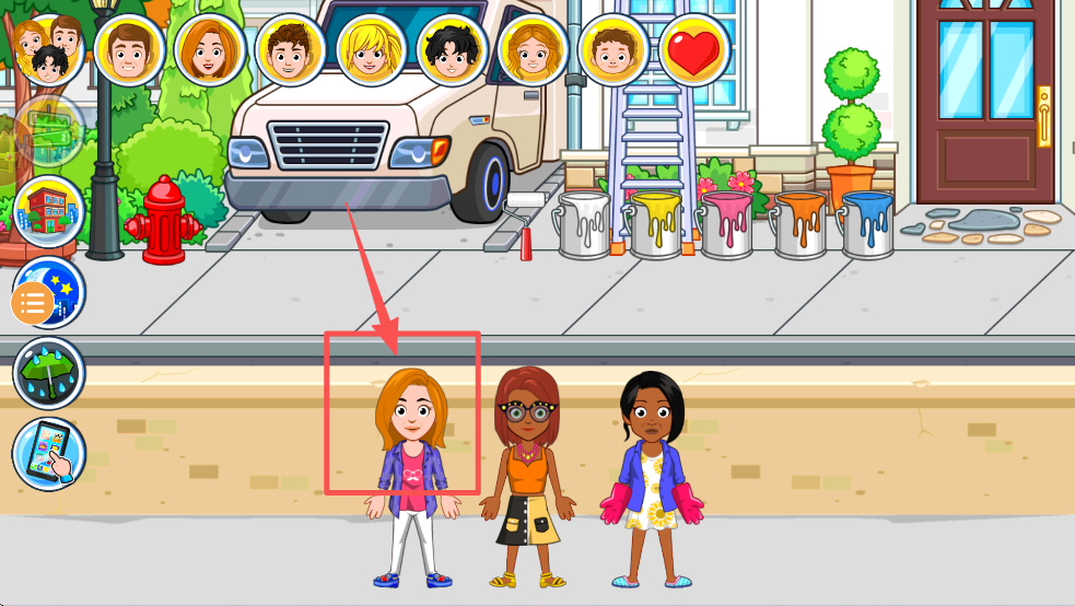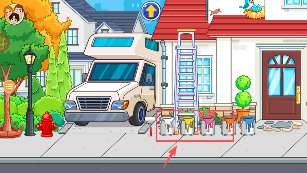 3、点击箭头指示的油漆桶,选择颜色,开始装扮你的角色或环境。