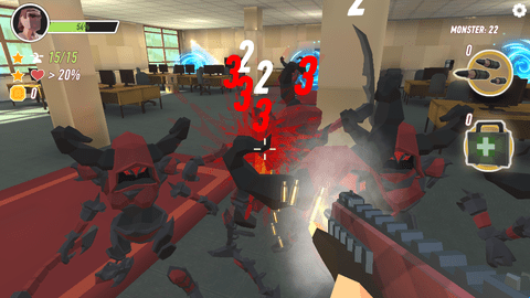 逃离办公室是一款很刺激的第一人称枪战射击游戏,这款枪战游戏的射击手感非常不错,特别是枪械的抖动以及背景音效,简直为玩家营造了一个身临其境般的环境。另外游戏的操作也超级简单,对准敌人就能自动射击,你只用移动角色和瞄准就行了。