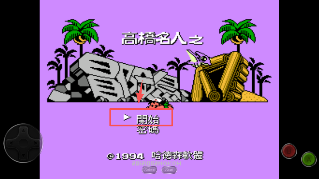 1、在游戏启动界面,点击红色框选的 “開始” 按钮,进入游戏的冒险关卡。