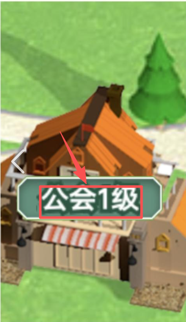 2、在主场景中找到标注 “公会 1 级” 的建筑,点击进入公会相关的功能界面。