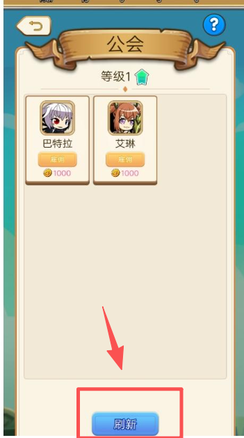 3、进入公会界面后,点击底部的 “刷新” 按钮,更新当前的公会角色列表。