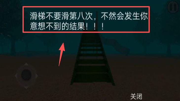 4、查看游戏内的提示信息,记住 “滑梯不要滑第八次” 的规则,点击关闭继续游戏。