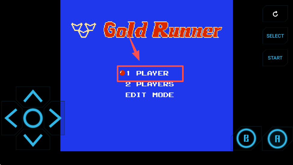 1、选择 “1 PLAYER” 选项,进入单人模式的游戏流程。