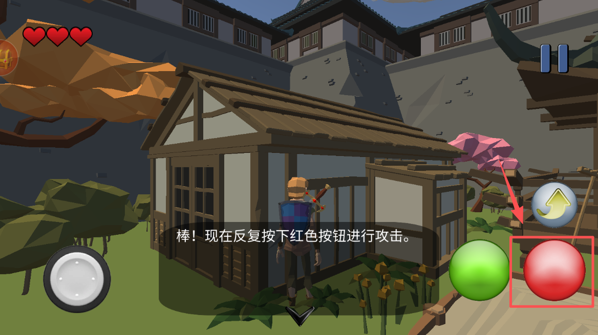 4、最后,通过反复按下红色按钮进行攻击,练习战斗技巧,为接下来的冒险做好准备。