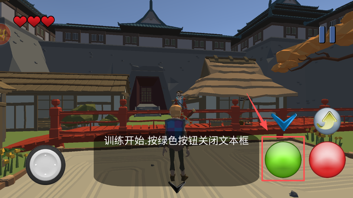2、接着,进入训练模式,通过按绿色按钮关闭文本框,学习游戏的基本操作和控制方式。