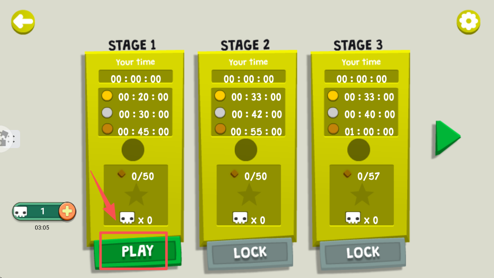 2、选择一个关卡并点击下方的“PLAY”按钮,准备开始挑战。