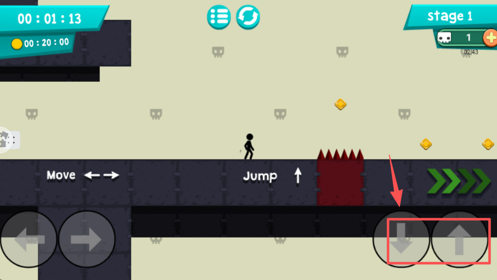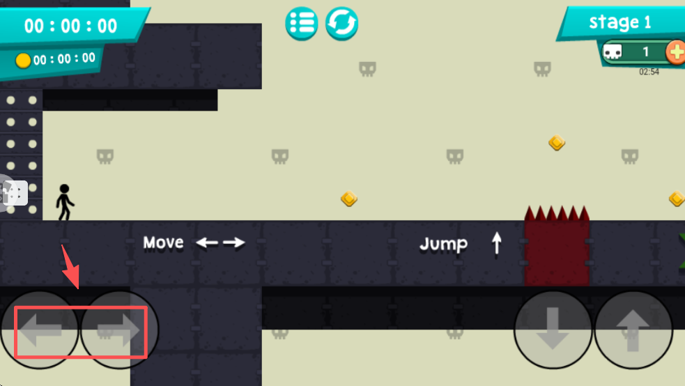 4、点击右下角的跳跃按钮,让你的角色跳过障碍,继续前进。