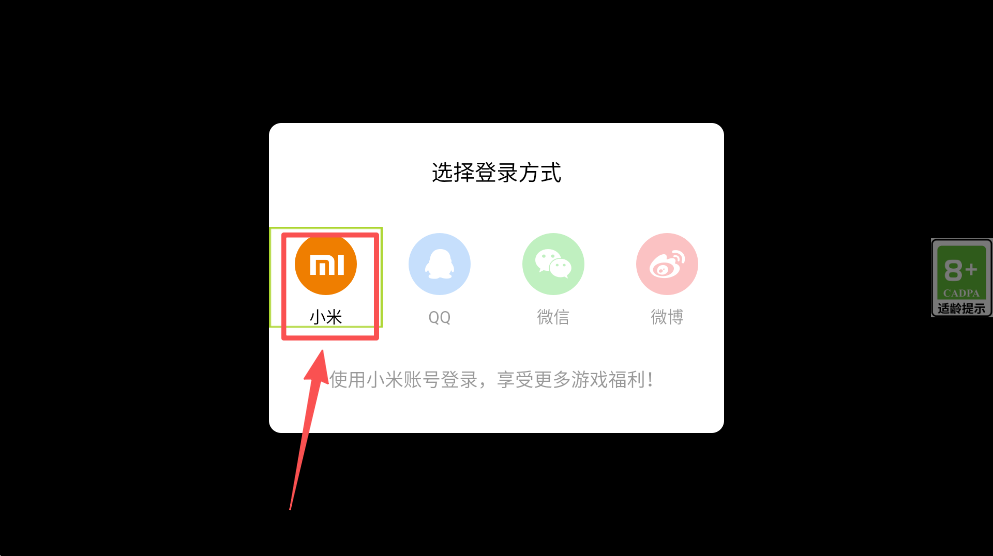 2、在登录界面,选择“小米”账号或其他方式登录,享受游戏福利。