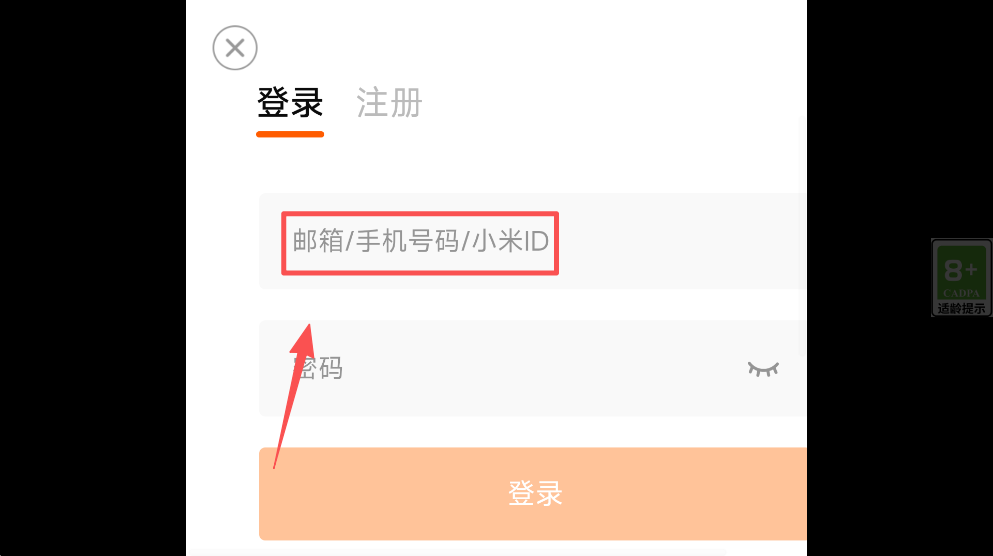 3、在登录界面,输入您的邮箱、手机号或小米ID及密码。
