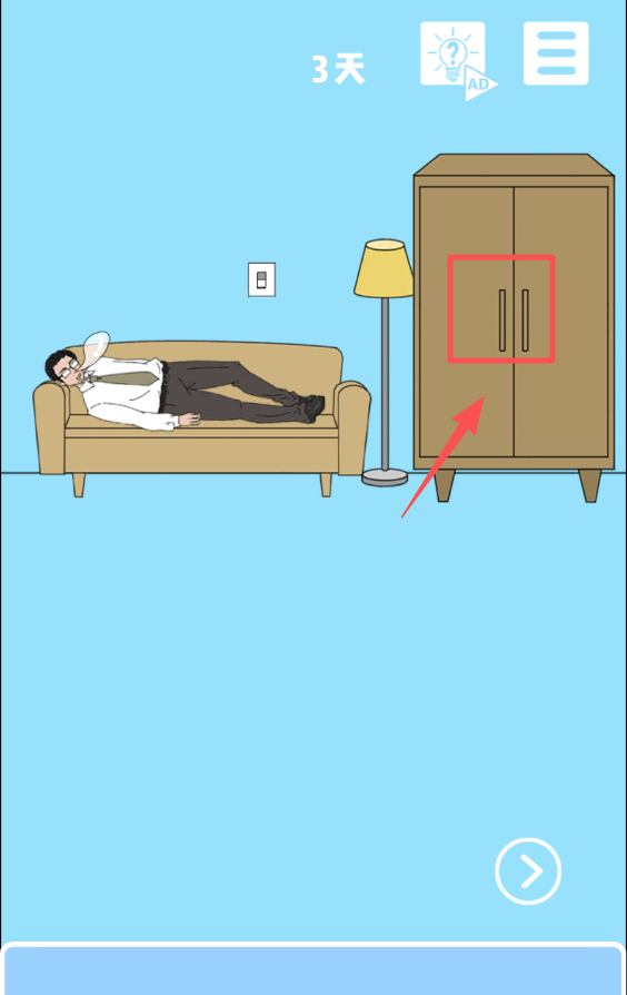4、寻找并点击藏起来的泡面。在房间中找到并点击隐藏的泡面,完成游戏目标。