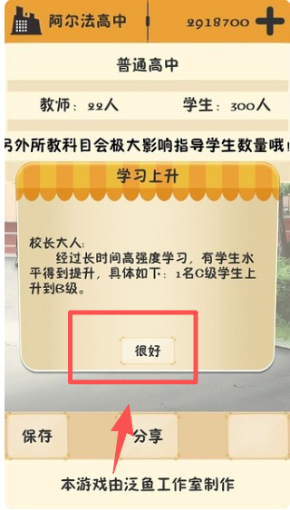 3、当有学生学习水平提升时,点击“很好”按钮进行确认,继续游戏。