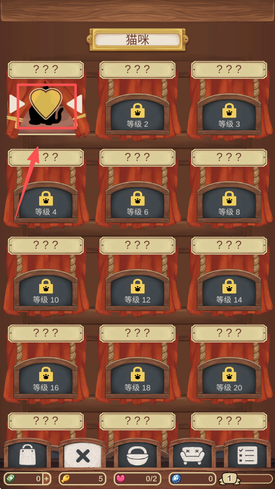 1、点击收养按钮,开始收养您的第一只猫咪,进入猫咪选择界面。