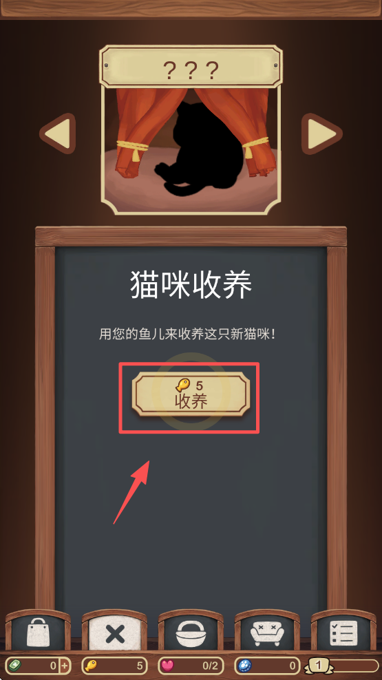 3、点击“收养”按钮,确认收养所选猫咪,开始与它互动。