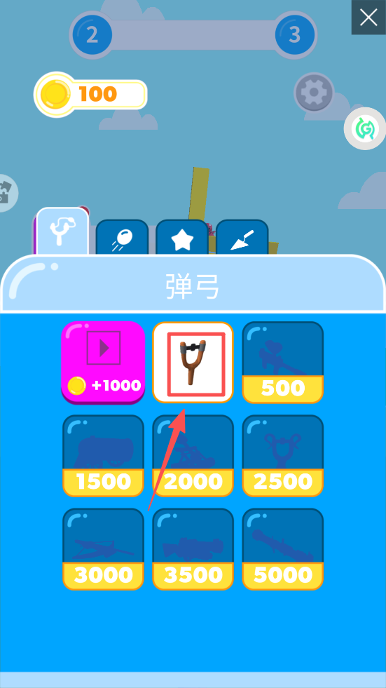 4、使用金币购买不同的弹弓和装备,提升你的射击能力。
