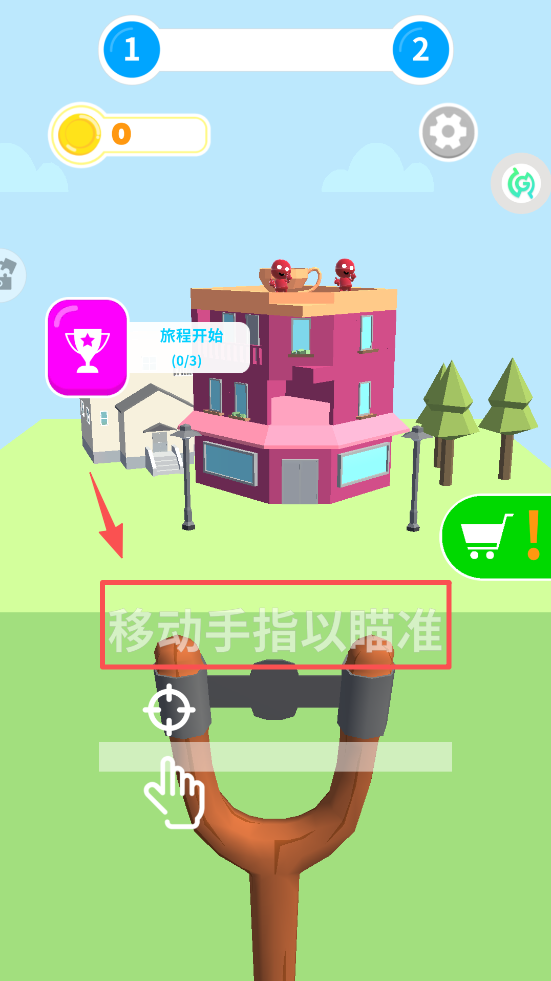 1、移动手指以调整瞄准,对准建筑物上的目标,准备发射。