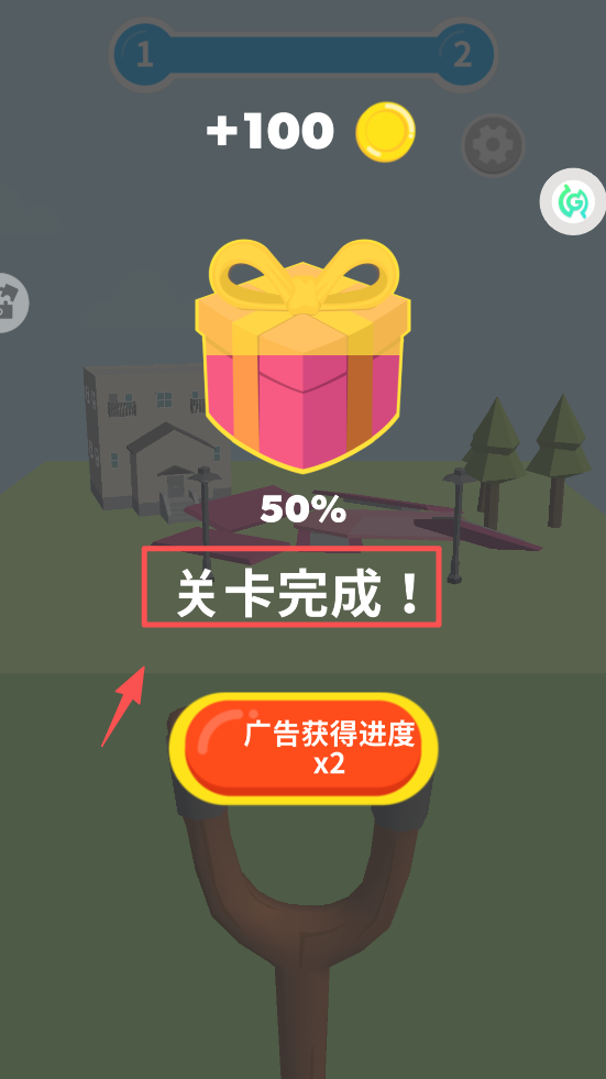 3、成功击中目标后,关卡完成,获得奖励和进度。