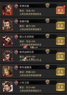 2、玩家可以点击战神殿来查看对应的武将信息,根据需要来进行招募。