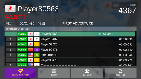 4、游戏结束还能查看自己的成绩,游戏用时、排名等。