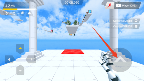 3、快速奔跑,点击右边的“跳跃键”,成功跳到对面的平台上。