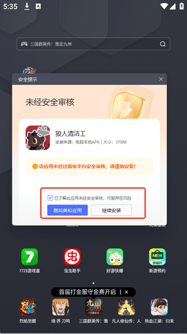 3、玩家只需要将出现的弹框后点击继续安装即可后就可以体验游戏了。