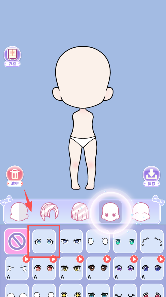 4、选择眼睛样式,点击应用到娃娃脸上,开始你的创作。