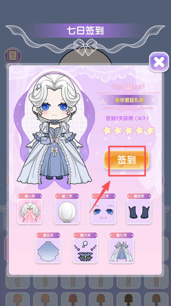 3、点击“签到”按钮,每日签到领取奖励,积累更多装扮。