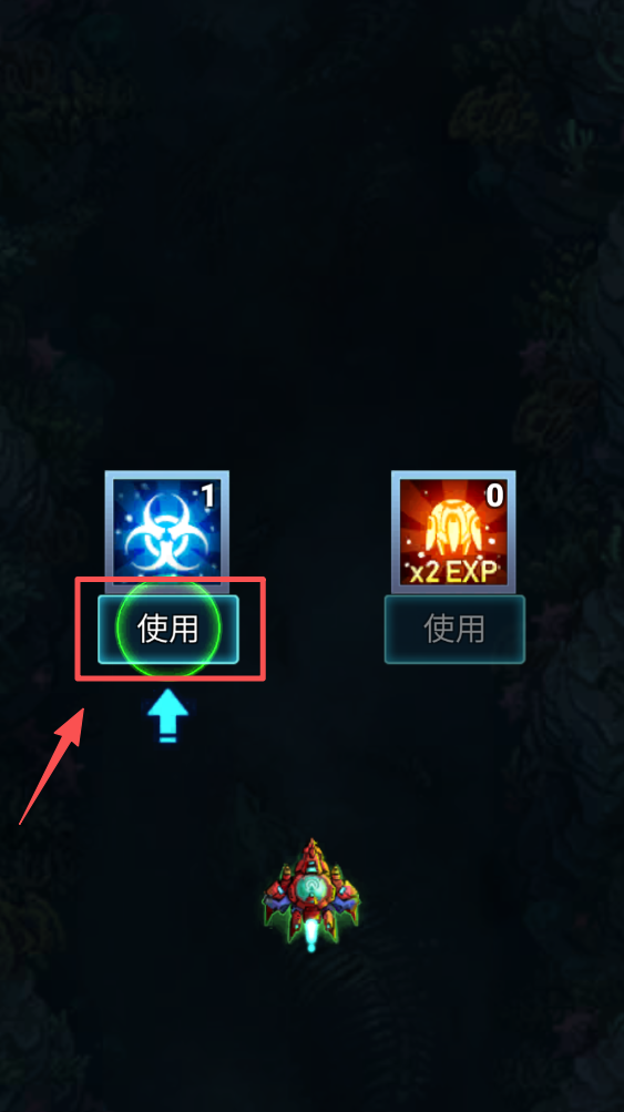 2、在道具选择界面,点击“使用”按钮来激活你的道具,增强飞船的战斗力。