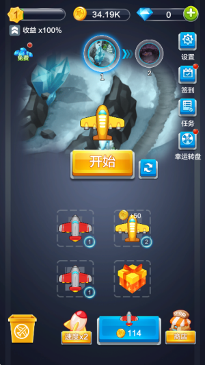 3、完成关卡与成就任务,获取资源以解锁并升级更多高级战机,组建你的无敌空中编队。