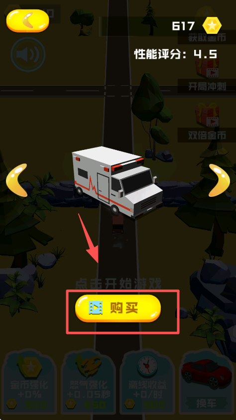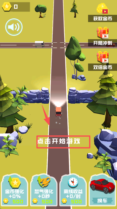 1、在游戏主界面找到 “点击开始游戏” 按钮并点击,进入公路赛车的游戏对局。
