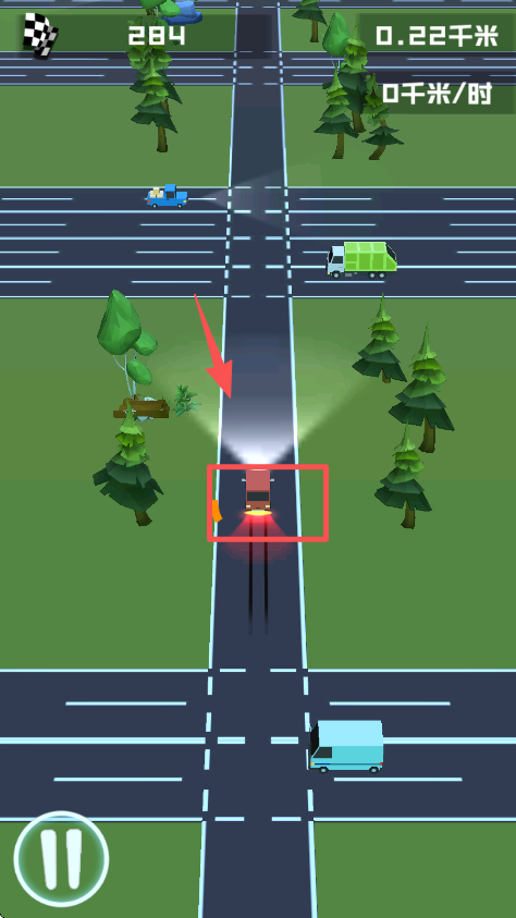 2、进入游戏后,操控红色车辆在公路行驶,注意躲避周围的其他车辆。