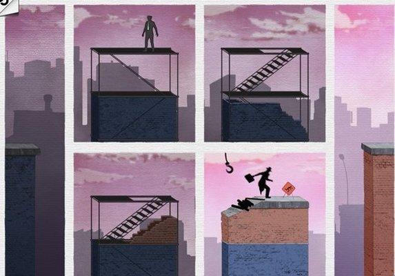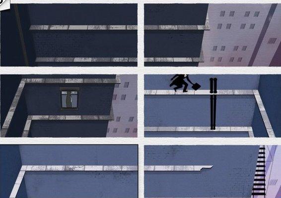 第五关:主人公利用公文包与绳索滑向大厦,交换2、3幅图位置,主人公避开子弹,成功逃脱。