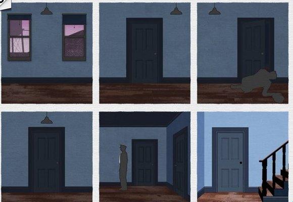 第三关:主人公在众多房间中穿梭,交换插画位置,主人公避开警察,从楼梯逃走。