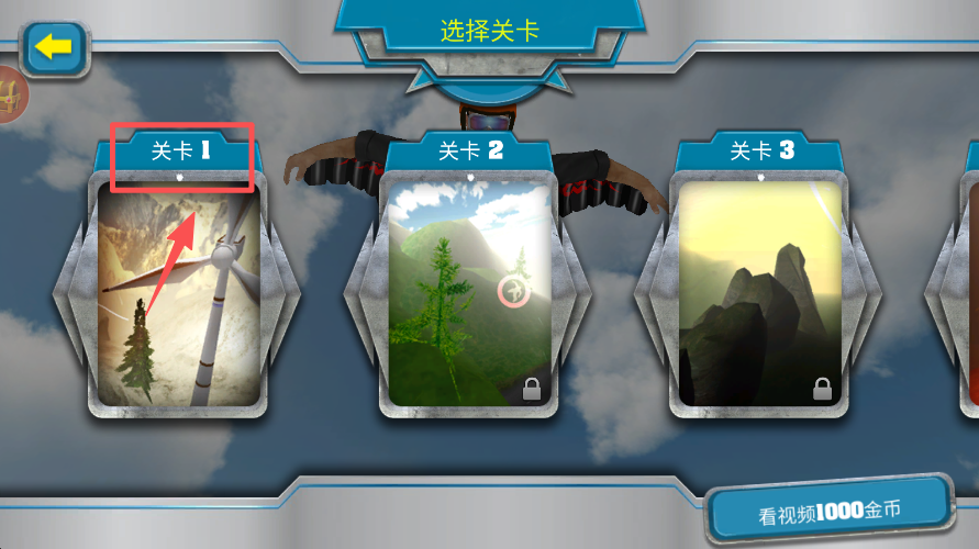 2、在关卡选择界面中,找到已解锁的 “关卡 1” 选项并点击,完成该关卡的选定操作。