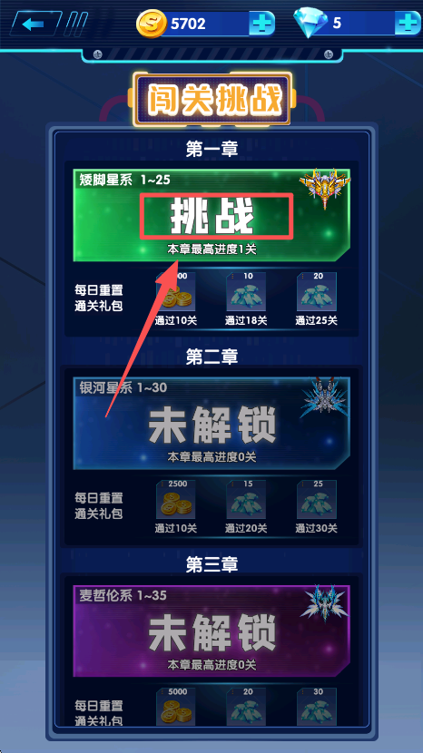 3、点击闯关挑战界面第一章的 “挑战” 按钮,进入对应关卡。