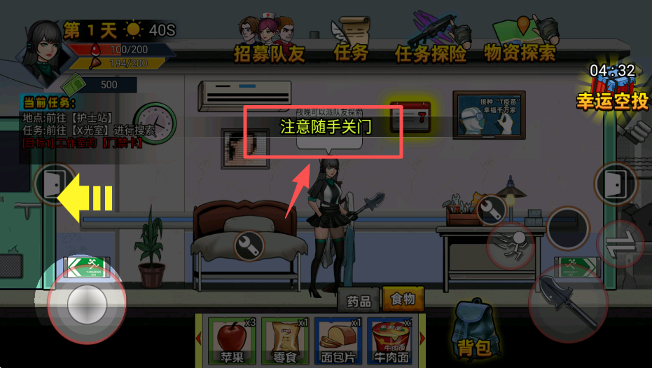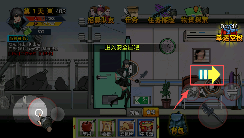 3、点击右侧前进按钮,推进角色靠近安全屋的入口位置。