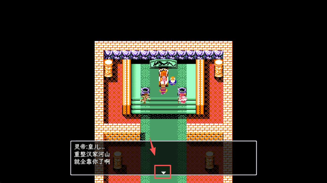 2、在剧情对话中,点击向下箭头继续对话,了解游戏背景和任务。