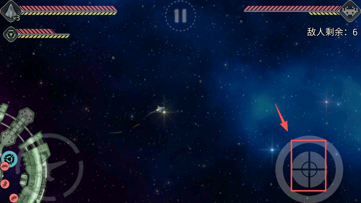 3、使用瞄准器锁定目标。在游戏中,使用右侧的瞄准器来锁定并攻击敌方飞船。