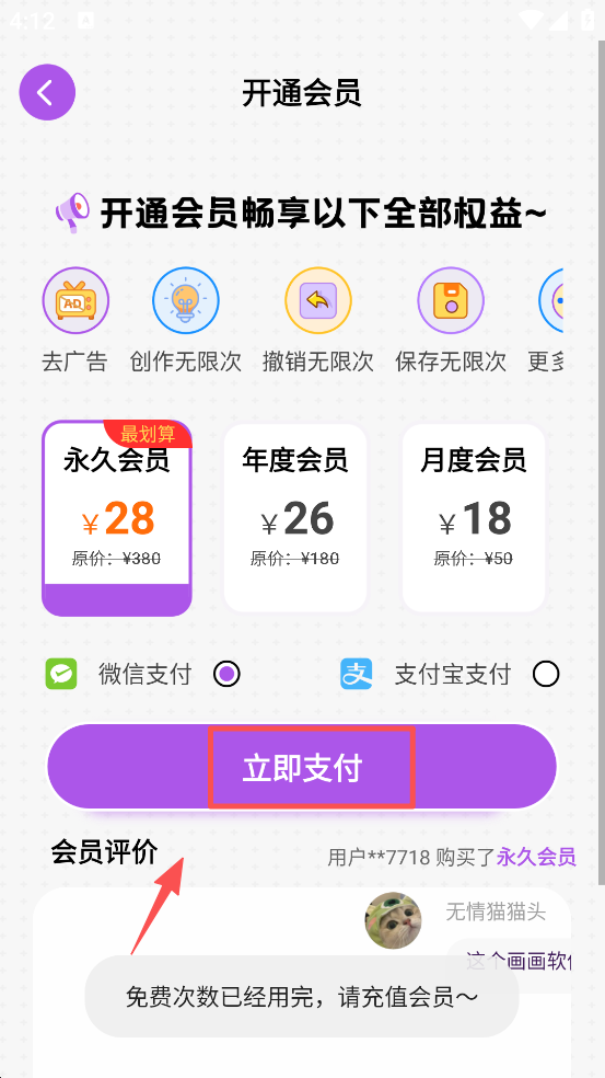 3、浏览会员权益,点击“立即支付”开通会员享受更多服务。