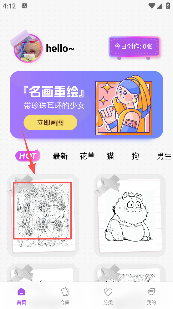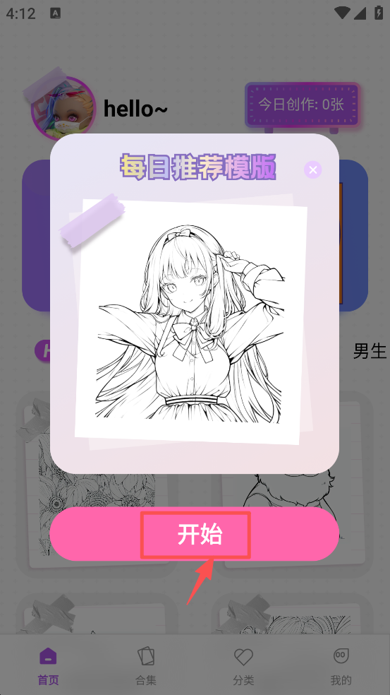 1、点击“开始”按钮,进入每日推荐模板,选择一个开始绘画。