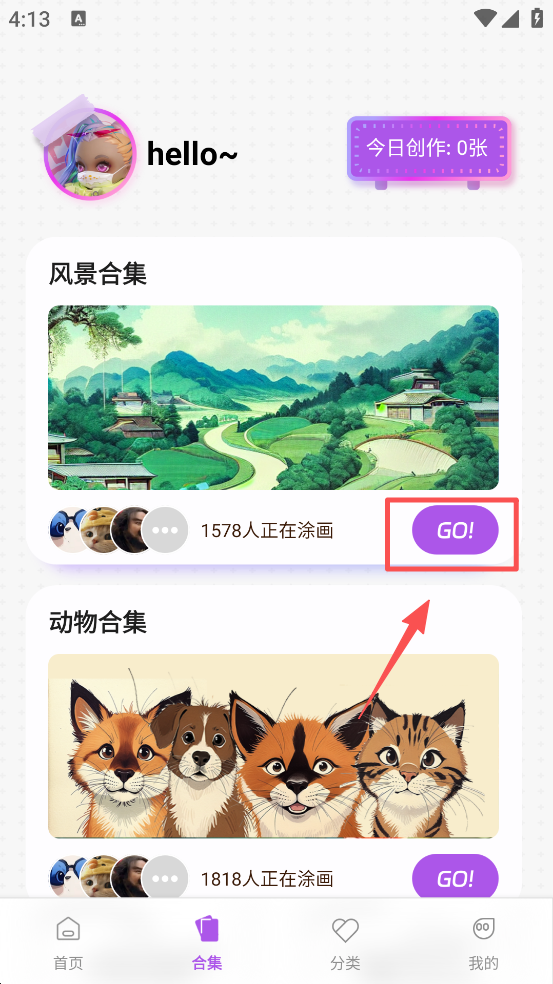 4、在合集页面选择一个合集,点击“GO!”加入并开始绘画。