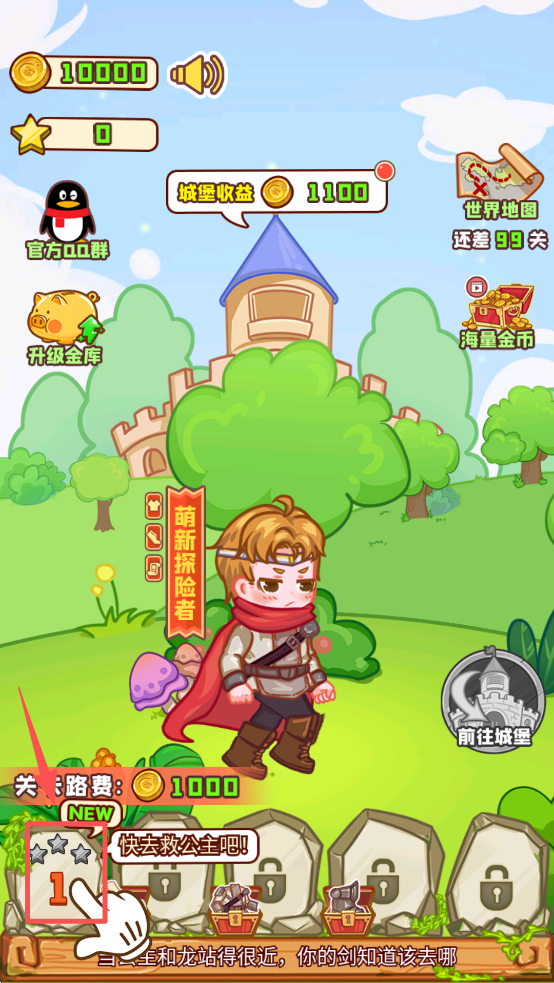 1、首先,点击主界面的“前往城堡”按钮,开始你的冒险之旅,拯救公主。