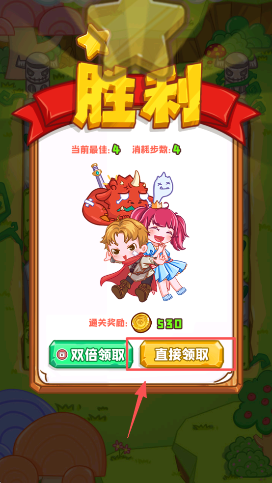 4、最后,战斗胜利后,点击“直接领取”按钮,领取你的通关奖励。