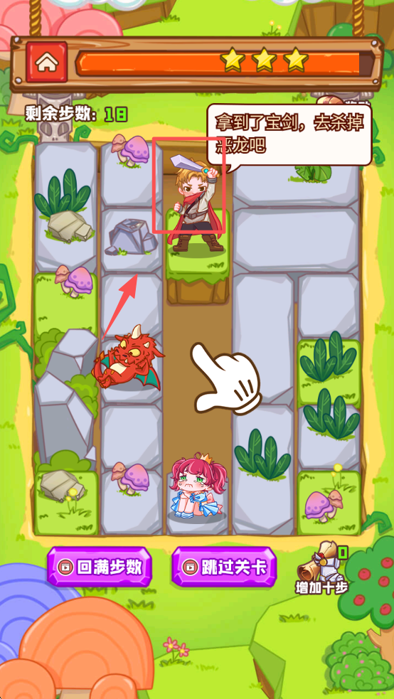 3、然后,拿到宝剑后,移动角色到恶龙处进行战斗,击败恶龙。