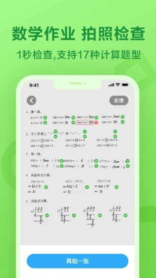 检查练习:系统即时批改练习,通过大数据展示孩子的练习情况,一起作业app让老师更好的了解孩子的情况;