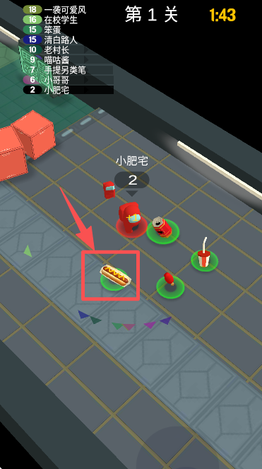 4、继续控制角色移动,吃掉场景里的热狗类食物提升人数。