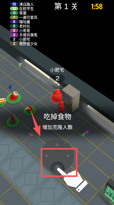 3、操控角色移动到食物处,吃掉食物来增加自己的克隆人数。