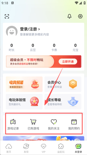 4、登录账号开通超级会员,不限时畅玩再加电竞频道领福利。