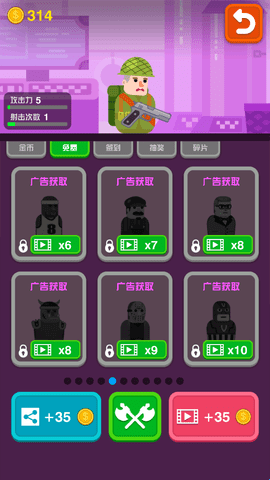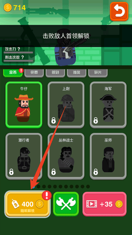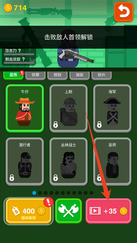 1、首先最经典的办法就是花金币解锁获得,进入“英雄选择”后,疯狂点击右下角这个看广告获得金币,因为是免广告版本,所以能不断增加金币。
