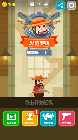 安卓银河快枪手是一款非常有趣的竖屏射击闯关游戏,又名:火枪英雄,有很多英雄等你挑选,选择好英雄后就可以开始冒险挑战了,不断向上攀登,干掉路上遇到的所有敌人。你永远有优先开枪的机会,所以必须找准时机,做到一枪毙命,如果不小心失手,容易被对面的敌人反杀。