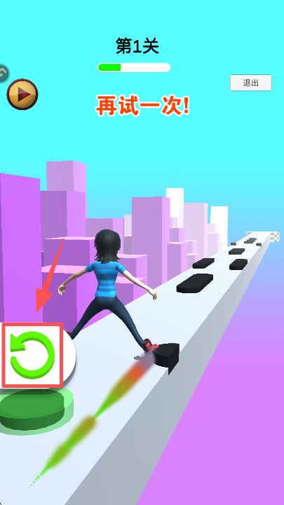 3、若碰到障碍物失败,点击界面左侧的 “再试一次” 按钮,重新开始本关挑战。
